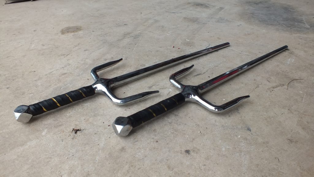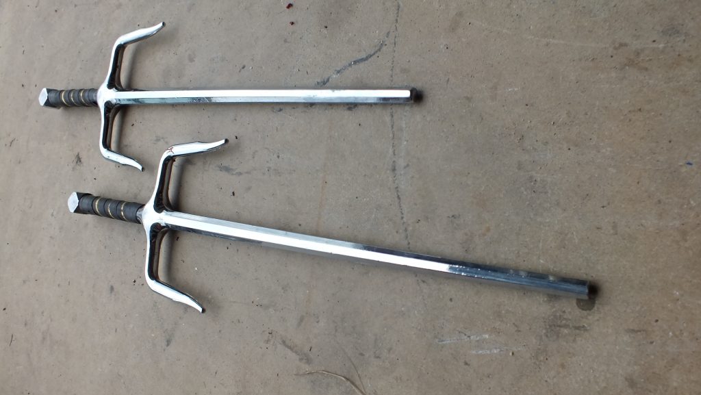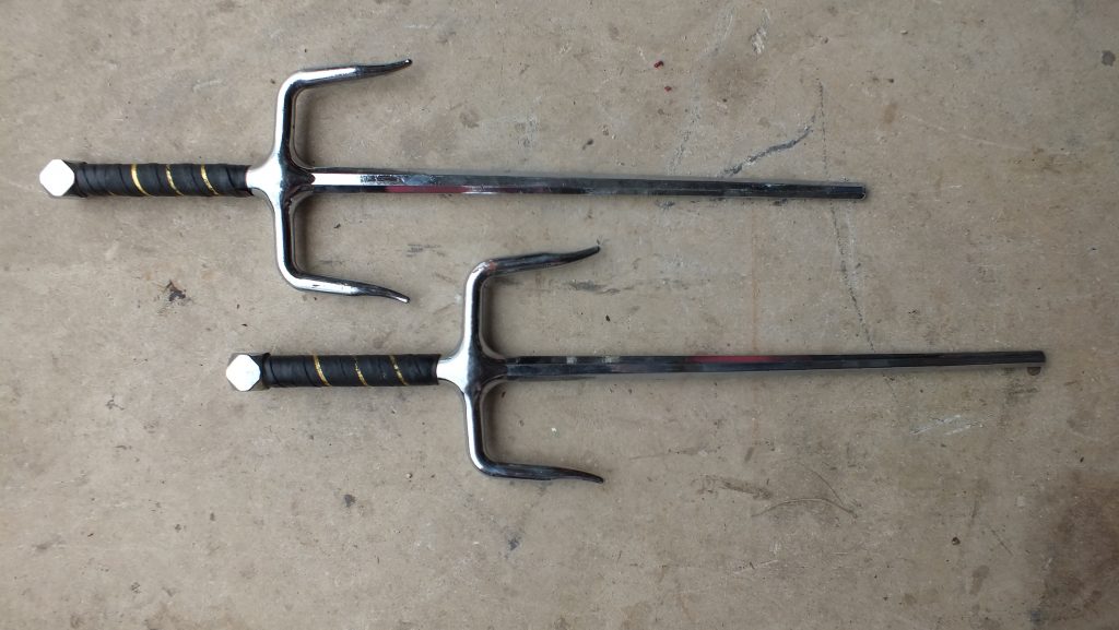 Sai Set – Deluxe Octagon – $25. Posted in Knives, Spears & Axe's Share: XFacebookPinterestLinkedin Used, in great condition…Deluxe 19 Inch Sai is used in ninjutsu and kobujutsu. Set of two.